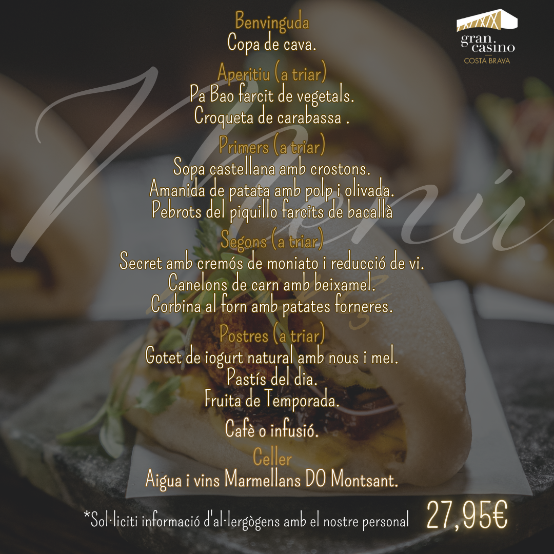 MENÚ DEL XEF – MARÇ 202527,95€ Menú disponible els divendres i dissabtes del mes de març excepte el 21. En estoc quantitat de MENÚ DEL XEF - MARÇ 2025 Afegeix a la cistella SKU: MENUCHEF_MARZO 2025 Categoria: RESTAURACIÓN Etiquetes: menú, menú del chef, menu marzo Descripció Descripció Productes relacionats RESTAURACIÓNMENÚ DEL XEF – ABRIL 2025 27,95€ Afegeix a la cistella RESTAURACIÓNMENÚ DEL XEF – FEBRER 2025 27,95€ Afegeix a la cistella RESTAURACIÓNMENÚ DEL XEF – JULIOL 27,95€ Afegeix a la cistella