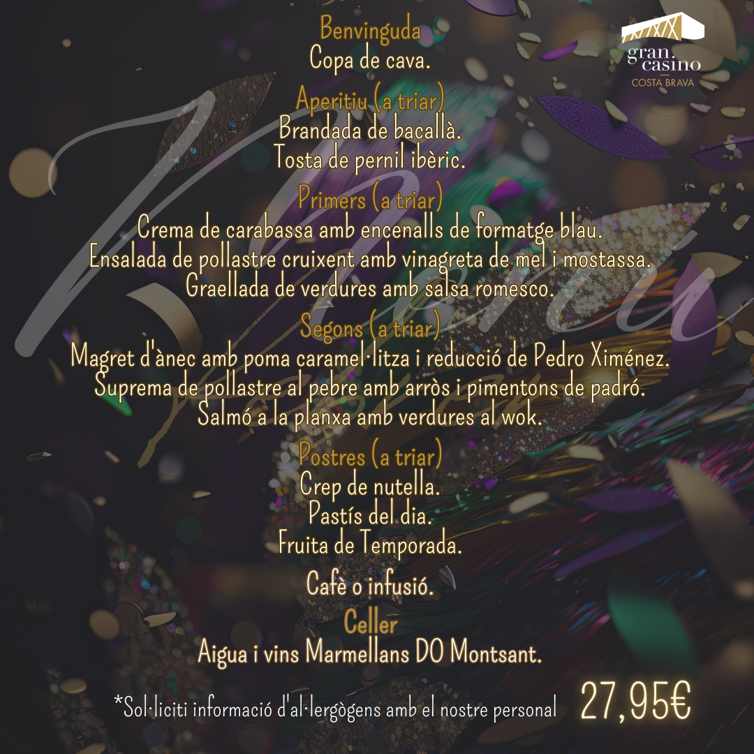 MENÚ DEL XEF – FEBRER 202527,95€ Menú disponible els divendres i dissabtes de febrer, excepte el 14 i 15. En estoc quantitat de MENÚ DEL XEF - FEBRER 2025 Afegeix a la cistella SKU: MENUCHEF_FEBRERO 2025 Categoria: RESTAURACIÓN Etiquetes: menú, menú del chef, menú febrer Descripció Descripció Productes relacionats RESTAURACIÓNMENÚ DEL XEF – ABRIL 2025 27,95€ Afegeix a la cistella RESTAURACIÓNMENÚ DEL XEF – MAIG 2025 27,95€ Afegeix a la cistella RESTAURACIÓNMENÚ DEL XEF – MARÇ 2025 27,95€ Afegeix a la cistella