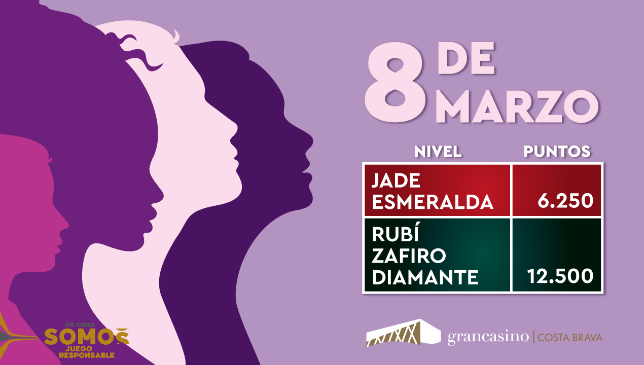 DÍA DE LA MUJER Con motivo de la celebración del Día de la Mujer el viernes 08 de marzo tendremos una promoción especial para todas las socias del Club. Solo por visitarnos y jugar, recibirás un premio acorde a su categoría: ¡No te lo pierdas!