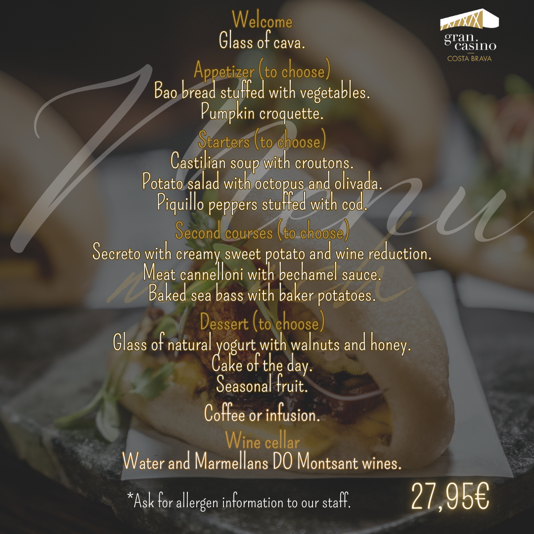 CHEF’S MENU APRIL 202527,95€ Menu available on Fridays and Saturdays in April except April 5, 25 and 26. In stock CHEF'S MENU APRIL 2025 quantity Add to cart SKU: MENUCHEF_ABRIL 2025 Category: RESTAURACIÓN Tags: Chef's menu, menu Description Description Related products RESTAURACIÓNCHEF’S MENU – DECEMBER 2024 31,95€ Add to cart RESTAURACIÓNCHEF’S MENU MAY 2025 27,95€ Add to cart RESTAURACIÓNCHEF’S MENU MARCH 2025 27,95€ Add to cart
