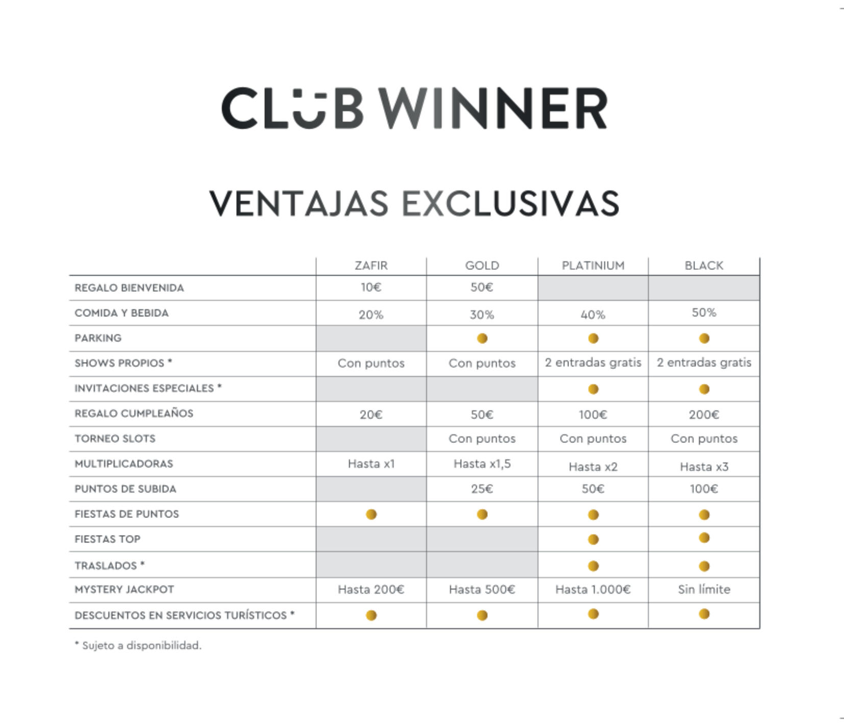 Si eres socio del Club Winner y visitas alguno de nuestros casinos en España, puedes disfrutar de todas estas ventajas: