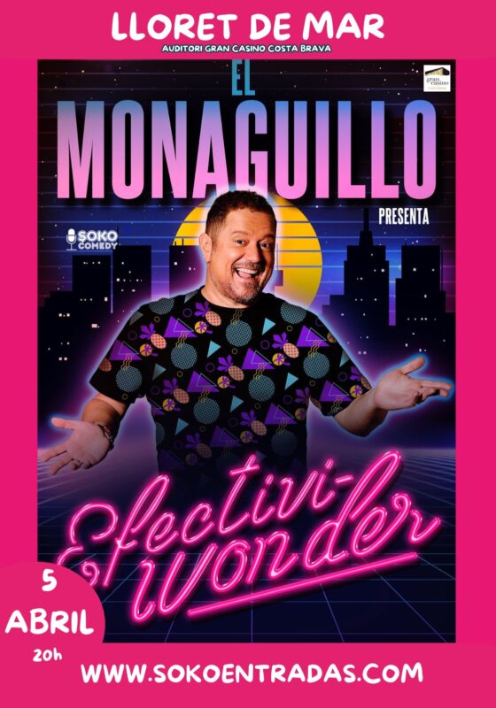 EFECTIVIWONDER – EL MONAGUILLO 5 abril, 2025 @ 8:00 PM - 9:30 PM Gran Casino Costa Brava Av. Vila de Tossa, 27-43, Lloret del Mar, Girona, España ¡Artista confirmado! El Monaguillo estará en GCCB el próximo 05 de abril 22€