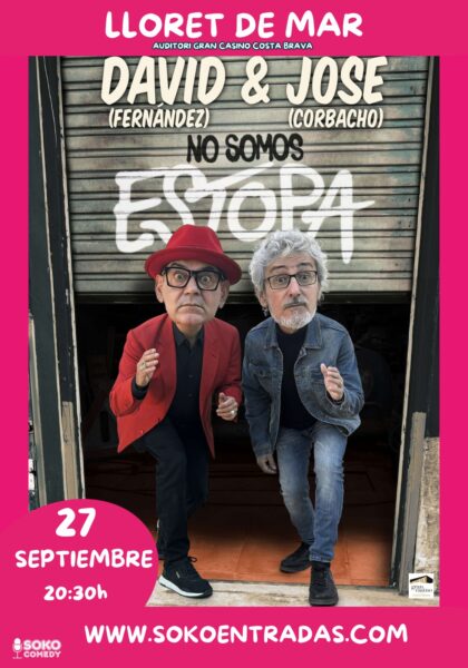 NO SOMOS ESTOPA – CORBACHO Y FERNÁNDEZ 27 septiembre, 2025 @ 8:30 PM - 10:00 PM Gran Casino Costa Brava Av. Vila de Tossa, 27-43, Lloret del Mar, Girona, España ¡Artistas confirmados! David Fernández y José Corbacho estarán en GCCB el próximo 27 de septiembre. ¡Desde 20€!