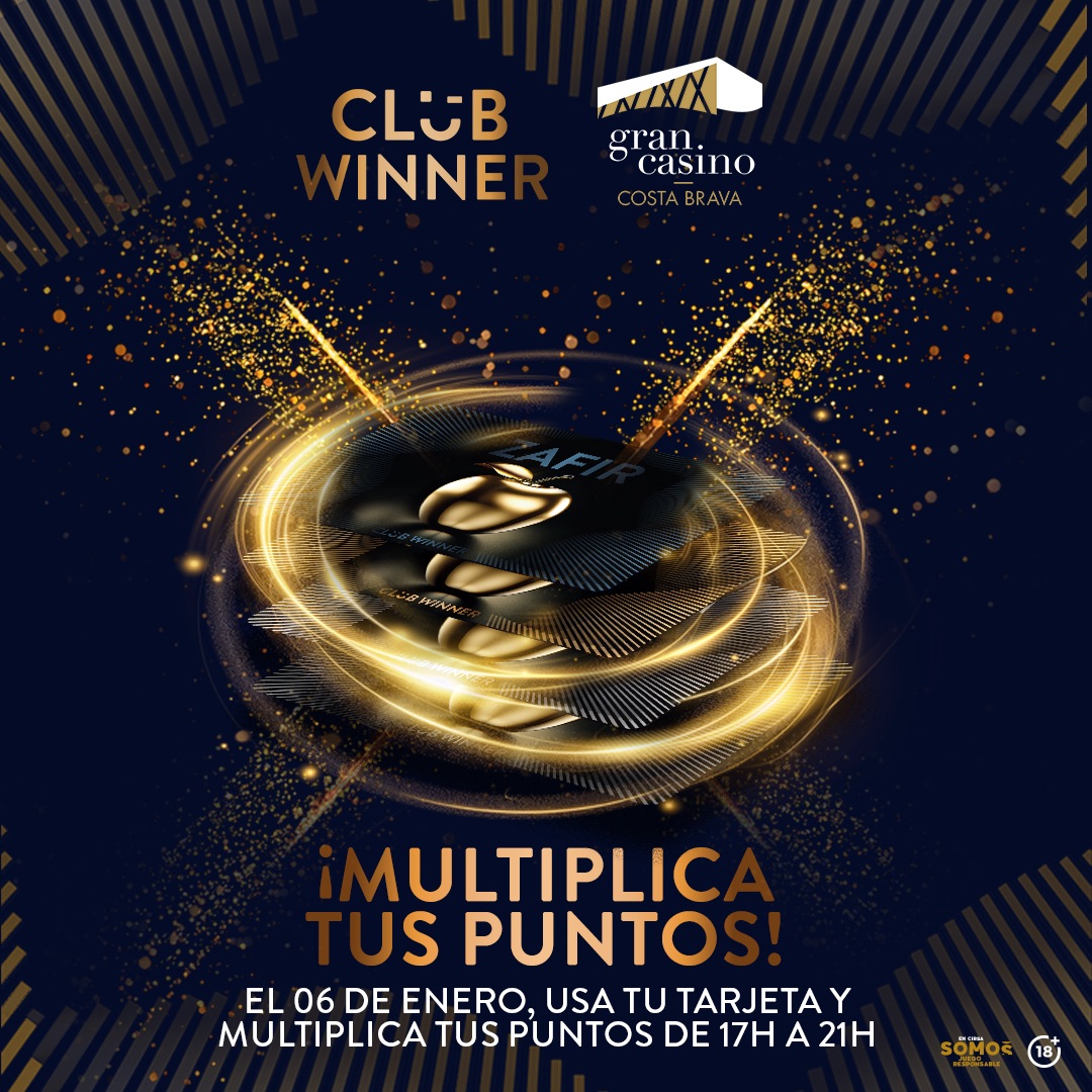 17:00-21:00h: Multiplicadora x2. Una de las promociones que más gustan a los clientes de Club Winner. El 06/01, de 17 a 21h, tus puntos valen el doble. Seguro que sabes cómo funciona la promoción, pero si tienes dudas, pregunta a nuestro personal de sala.